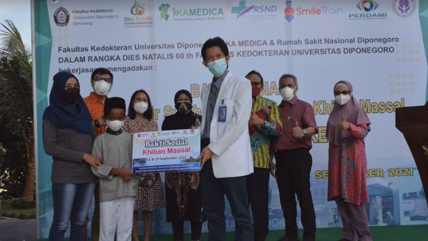 ILMU BEDAH, SEMARANG – IKA Medika (Ikatan Alumni Fakultas Kedokteran Universitas Diponegoro), Rumah Sakit Nasional Diponegoro (RSND) dengan menggandeng sejumlah pihak diantaranya Yayasan SmileTrain, Perhimpunan Dokter Spesialis Bedah Plastik Rekonstruksi dan Estetik Indonesia (PERAPI), Perhimpunan Dokter Spesialias Mata (PERDAMI) Cabang Jateng, dan Klinik Diponegoro, memperingati Dies Natalis ke-60 Fakultas Kedokteran (FK) Universitas Diponegoro (UNDIP) dengan menggelar bakti sosial (Baksos). Kegiatan Baksos yang meliputi operasi bibir sumbing, operasi katarak, dan khitan massal dilakukan di Lobby RSND Tembalang, Kota Semarang, Sabtu (11/9/2021).
